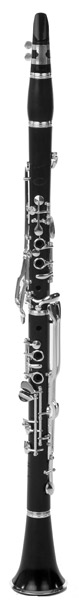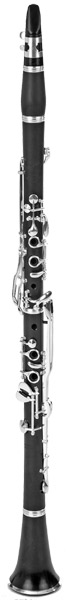 15 Klappen, 4 Brillenringe, versilbert, Grenadillholz, Rollen in H – Cis, C – Dis, B-Klarinettenmundstück